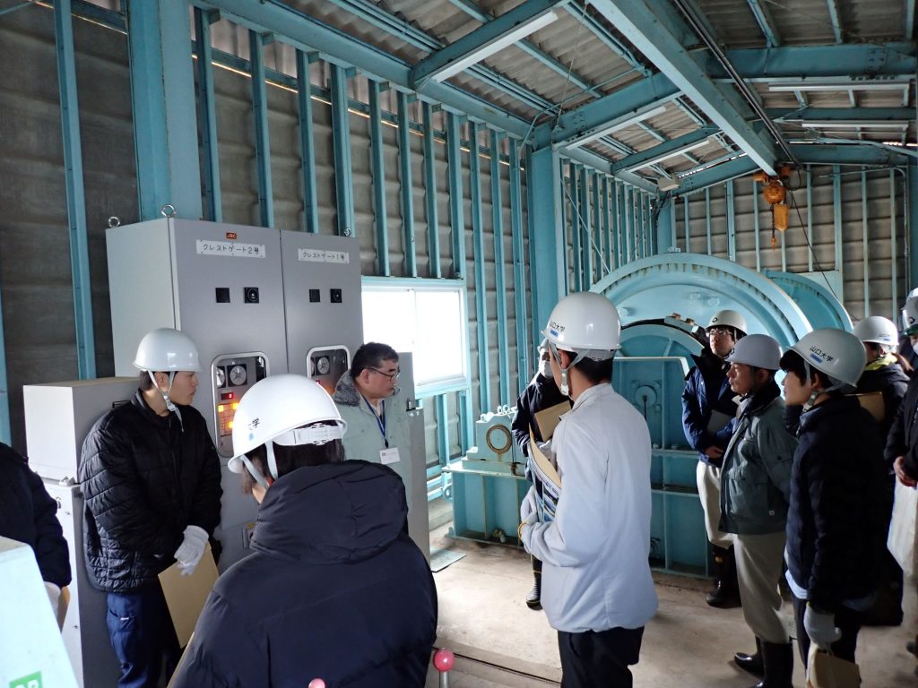 参加した学生達は、引率してくださった山口県の職員の方々に熱心に質問していました。山口県企業局、山口県厚東川ダム管理事務所の方々には今回の見学にあたり大変お世話になりました。